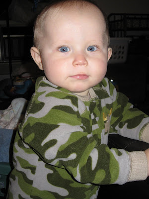 He is now 18 months old. We have his doctor's appt next week. He's in 18-24 mo clothes. He's going through a growth spurt which has made our nights rough. He's still in our room. I know I know....we're going to move him and us once BB leaves for college in the fall.